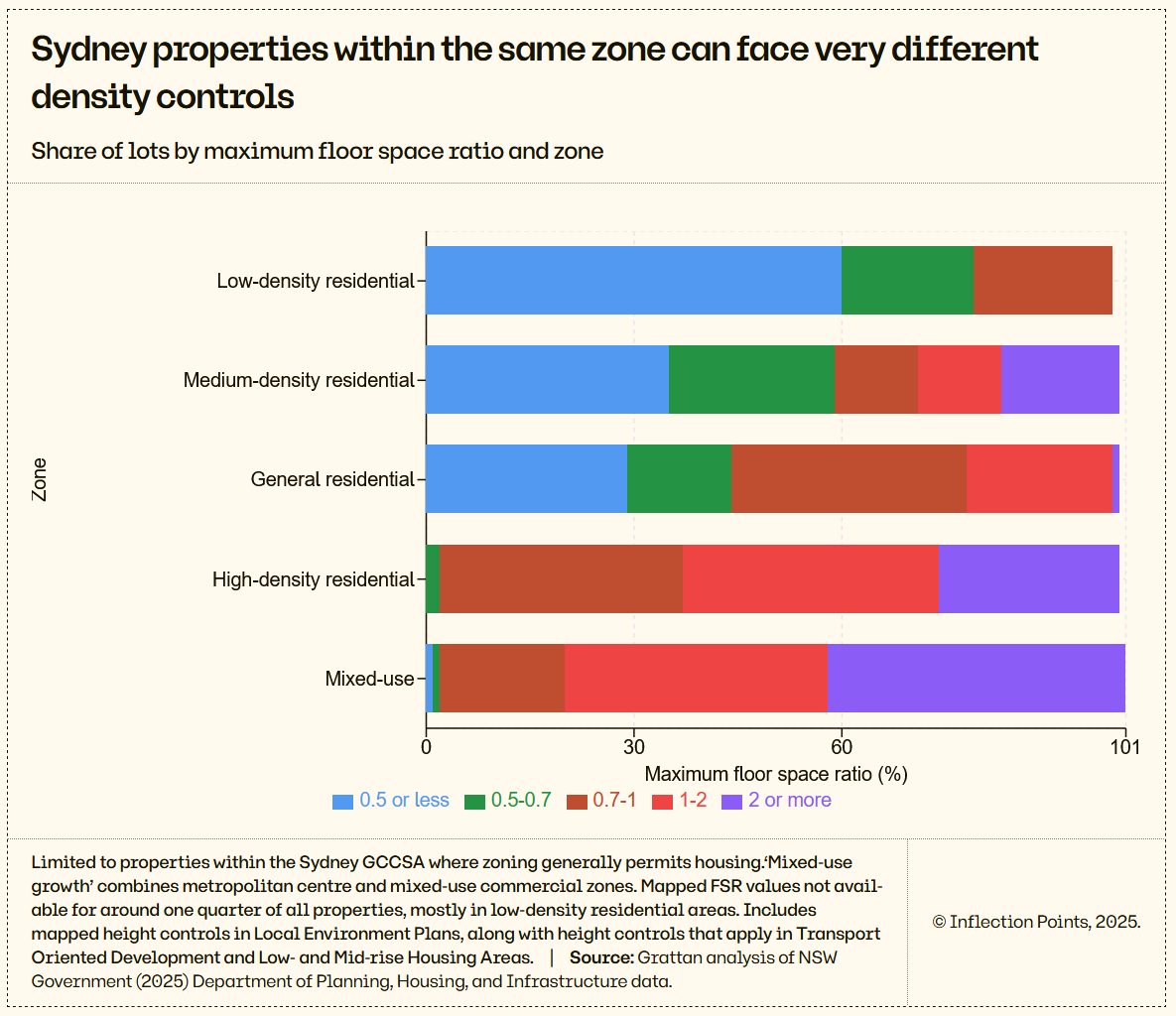 And across NSW, highly stringent maximum floor space ratios are widely used in ways that undercut residential zones notionally intended to permit higher-density.