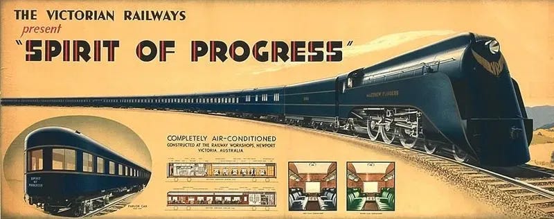 That spirit was stymied, however, at the border between Victoria and New South Wales, where broad gauge met standard gauge at Albury. Even by 1937, Australia hadn't established a modern, affordable and high quality rail link between its two largest cities. The Spirit of Progress was stalled.